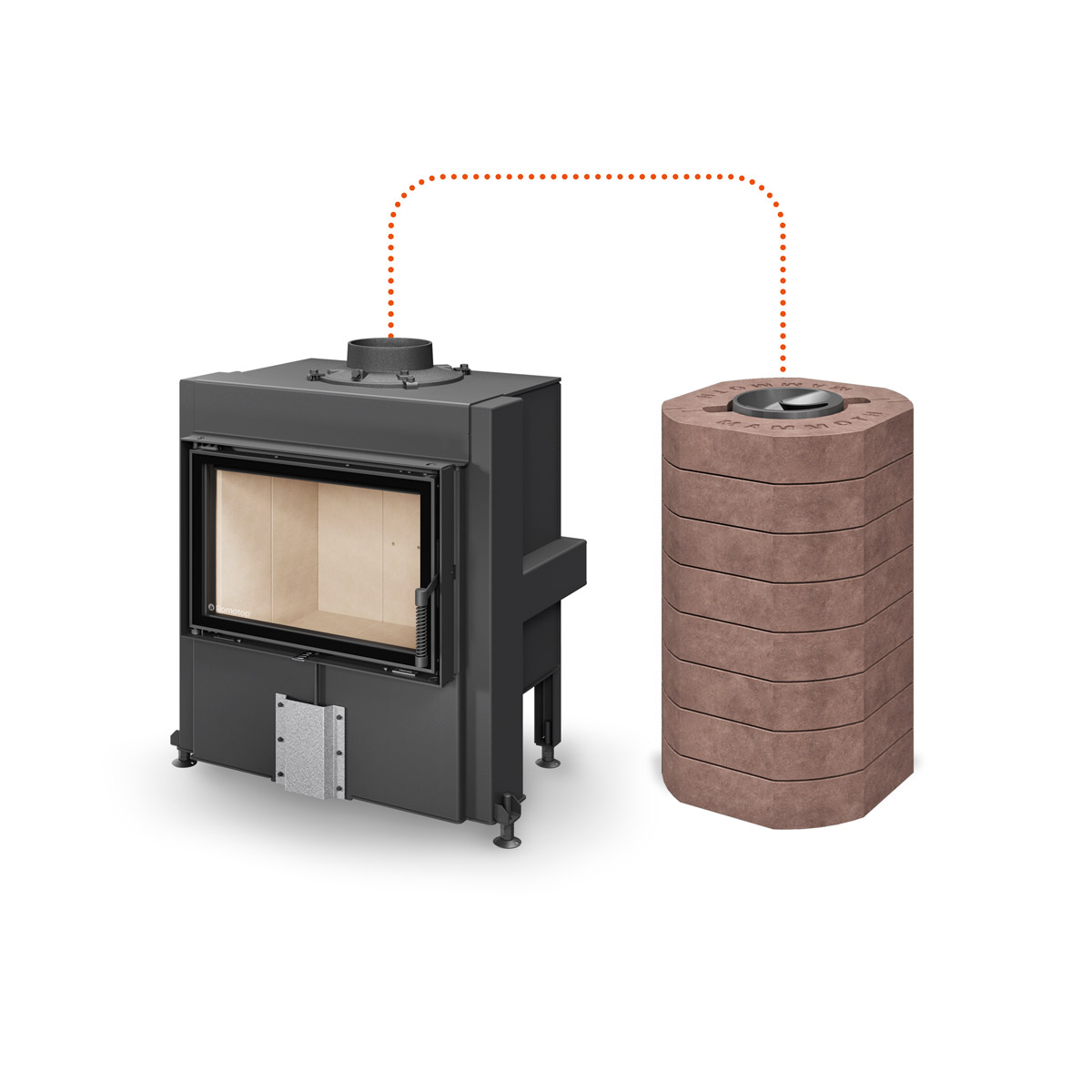 Spojení kamnové vložky DYNAMIC PLUS s akumulačními prstenci MAMMOTH vytváří vysoce účinný topný systém, který propojuje silné topeniště s výhodami dlouhotrvajícího sálavého tepla.