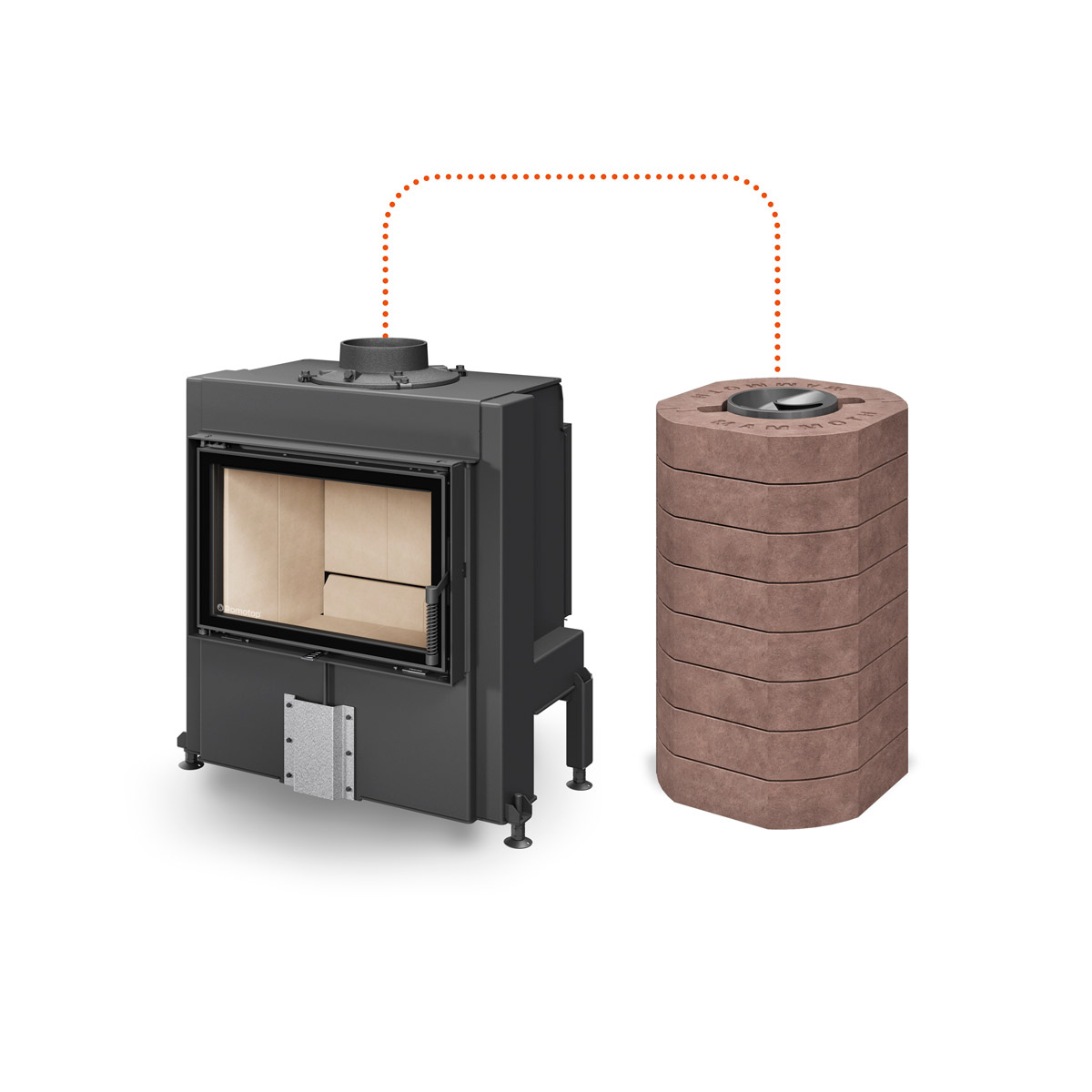 Spojení kamnové vložky DYNAMIC PLUS s akumulačními prstenci MAMMOTH vytváří vysoce účinný topný systém, který propojuje silné topeniště s výhodami dlouhotrvajícího sálavého tepla.